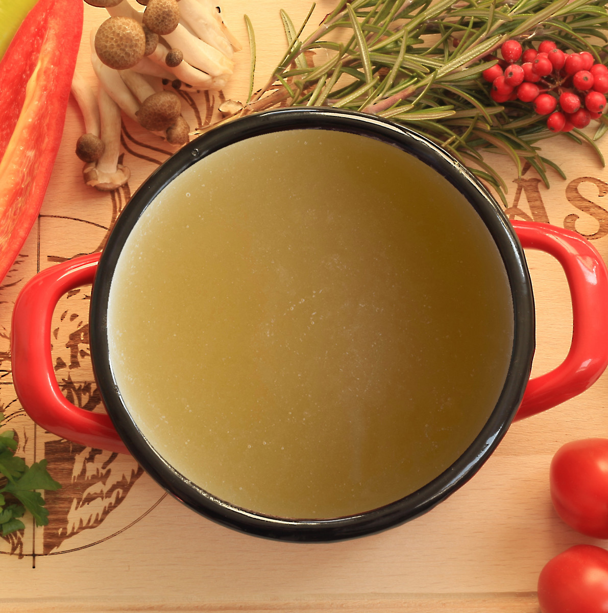 Vegyes zöldségből és sertés húsoscsontból (mindkettő gazdagon) 5 órán keresztül lassan főzött alaplé. Kollagénban dús, pár perc alatt akár zöldség vagy húsleves is készíthető belőle. Ételek készítéséhez (pl. rizottó) kiváló főzőlé.